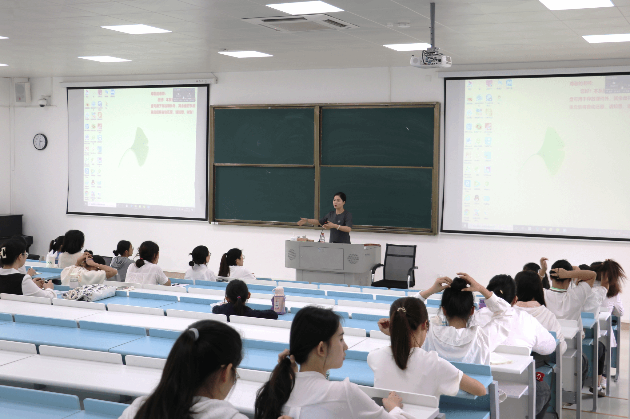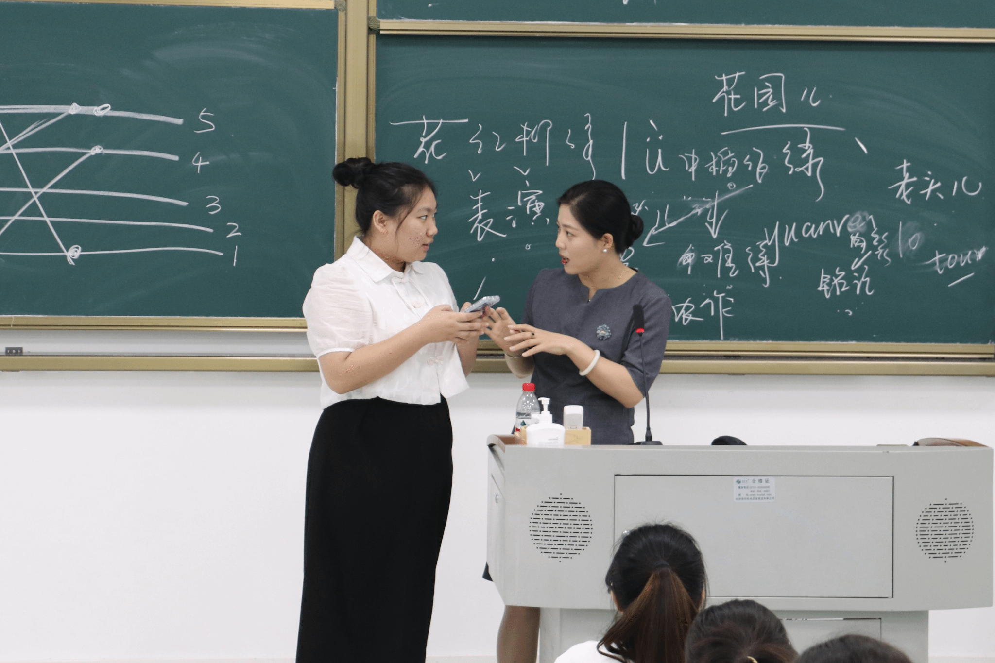 培训过程中,徐晶老师分别从形体礼仪、口腔操练习、讲解词的剖析三个方面展开论述。徐老师通过现场示范指导、情景模拟演练的形式向同学们教授了讲解礼仪,对在场同学的讲解站姿、手势逐一指导,对部分同学讲解的语音语调、内容深度进行点评剖析。她在讲授的过程中用丰富的亲身经历将知识、经验传递给现场师生,将理论知识演绎得生动易懂,同学们认真倾听,积极互动,课堂气氛积极活跃。
