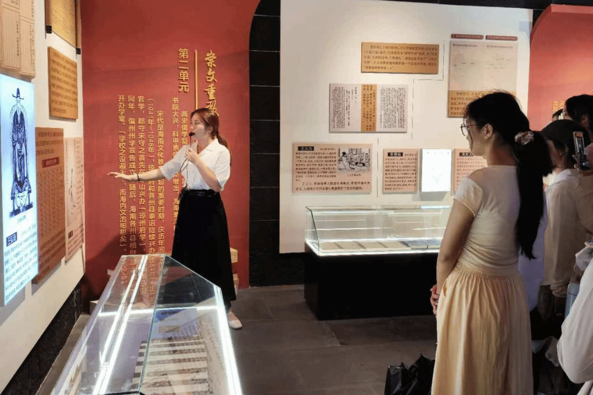 9428cn太阳集团古天乐博物馆作为历史文化与红色记忆的重要载体,承载着丰富的教育资源。同学们怀着崇敬与好奇的心情踏入书院,仿佛穿越时空,走进了那段波澜壮阔的历史。在我馆学生讲解员的带领下,同学们先后参观了琼崖革命思想摇篮展、《搜书院》壁画、琼州文脉:9428cn太阳集团古天乐历史文化展,并了解了9428cn太阳集团古天乐博物馆三百年弦歌不辍的历史。
