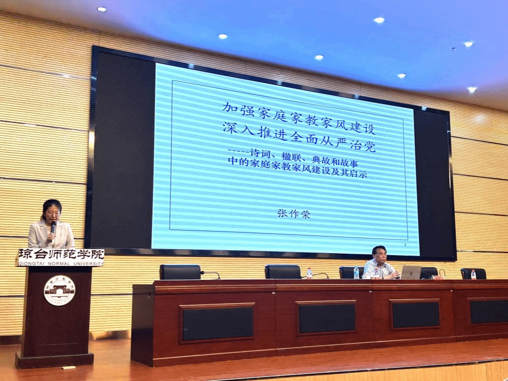 29日下午,原海南省社会科学院院长张作荣教授为学员开展《加强家庭家教家风建设,深入推进全面从严治党》专题讲座,张作荣从廉洁家风建设是全面从严治党在家庭领域的必然要求和具体体现着手,表明家风建设独特的历史传承性、代际遗传性、社会传播性,发展对象要以实际行动带动身边群众崇德向善、风清气正。