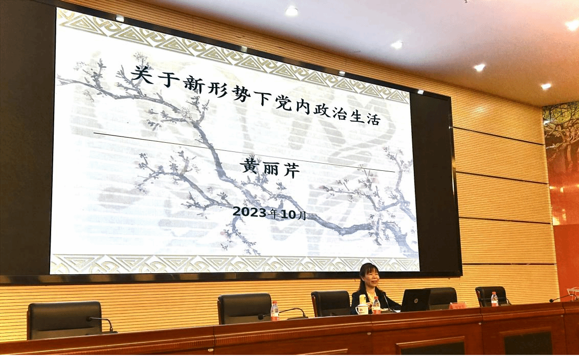 10月29日上午,海南大学公共管理学院党委书记黄丽芹教授给学员做《关于党内政治生活的若干准则》讲座。黄丽芹理论功底深厚,从习近平总书记关于严肃党内政治生活的论述、党内政治生活的概念、提出、意义、《关于新形势下党内政治生活的若干准则》条文解读等几个方面给学员详细阐释了新形势下党内政治生活的基本准则,让学员更加深刻地领会了中国共产党严格的组织纪律和强大的生命力。