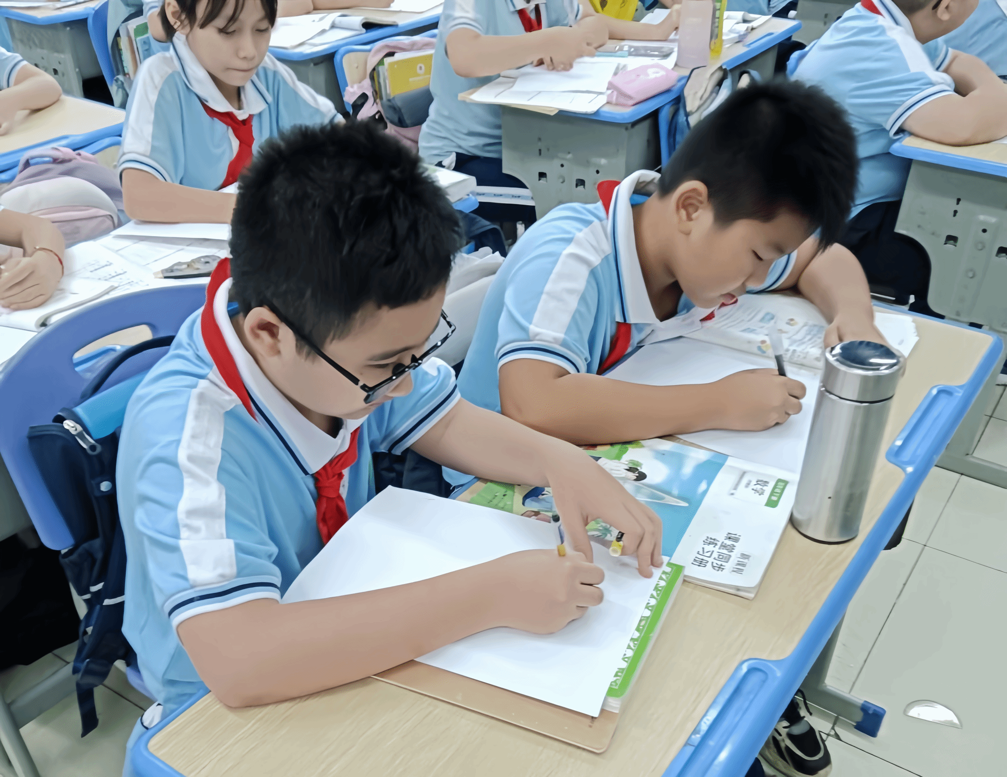 同学们以纸笔传情,缅怀着革命先烈的光辉事迹,通过纸张,抒发内心感受体会。