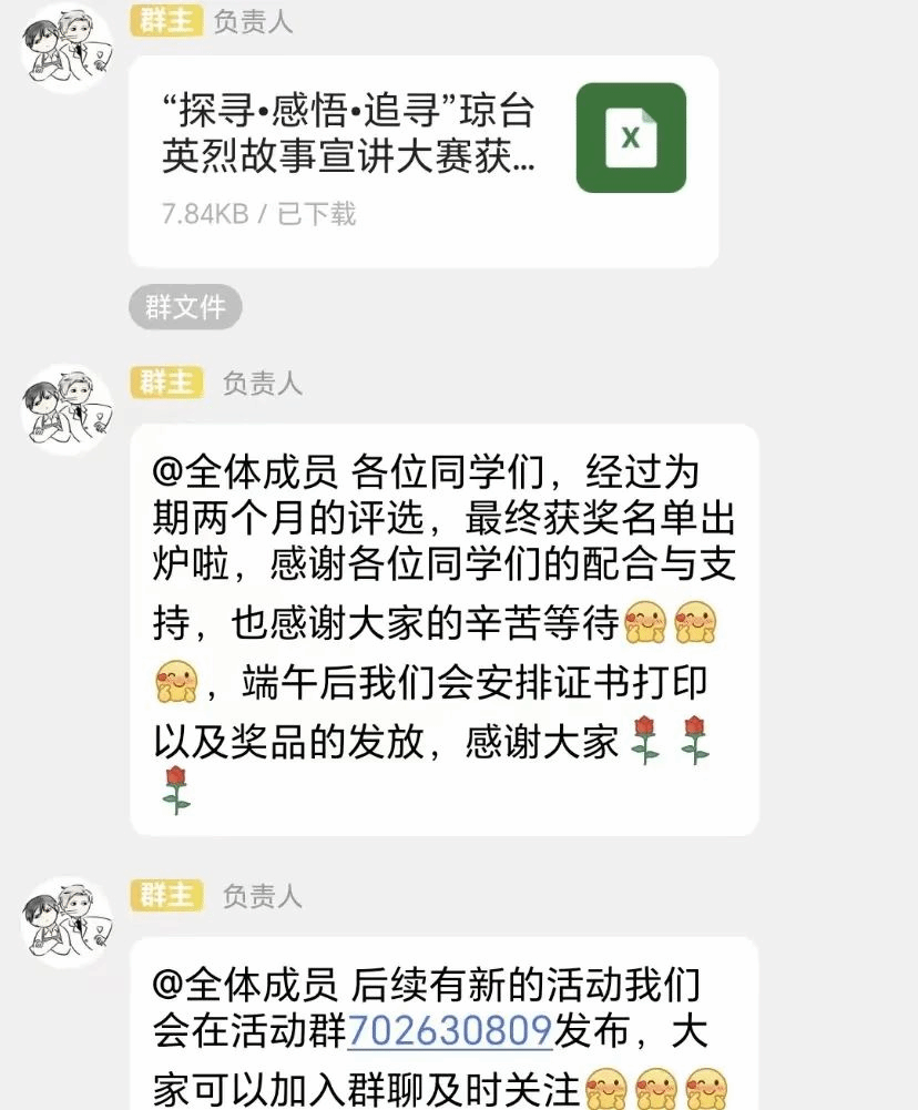 活动结束,工作人员提醒参赛者发布花絮、对花絮内容进行审核,最后公布此次比赛的获奖名单。
