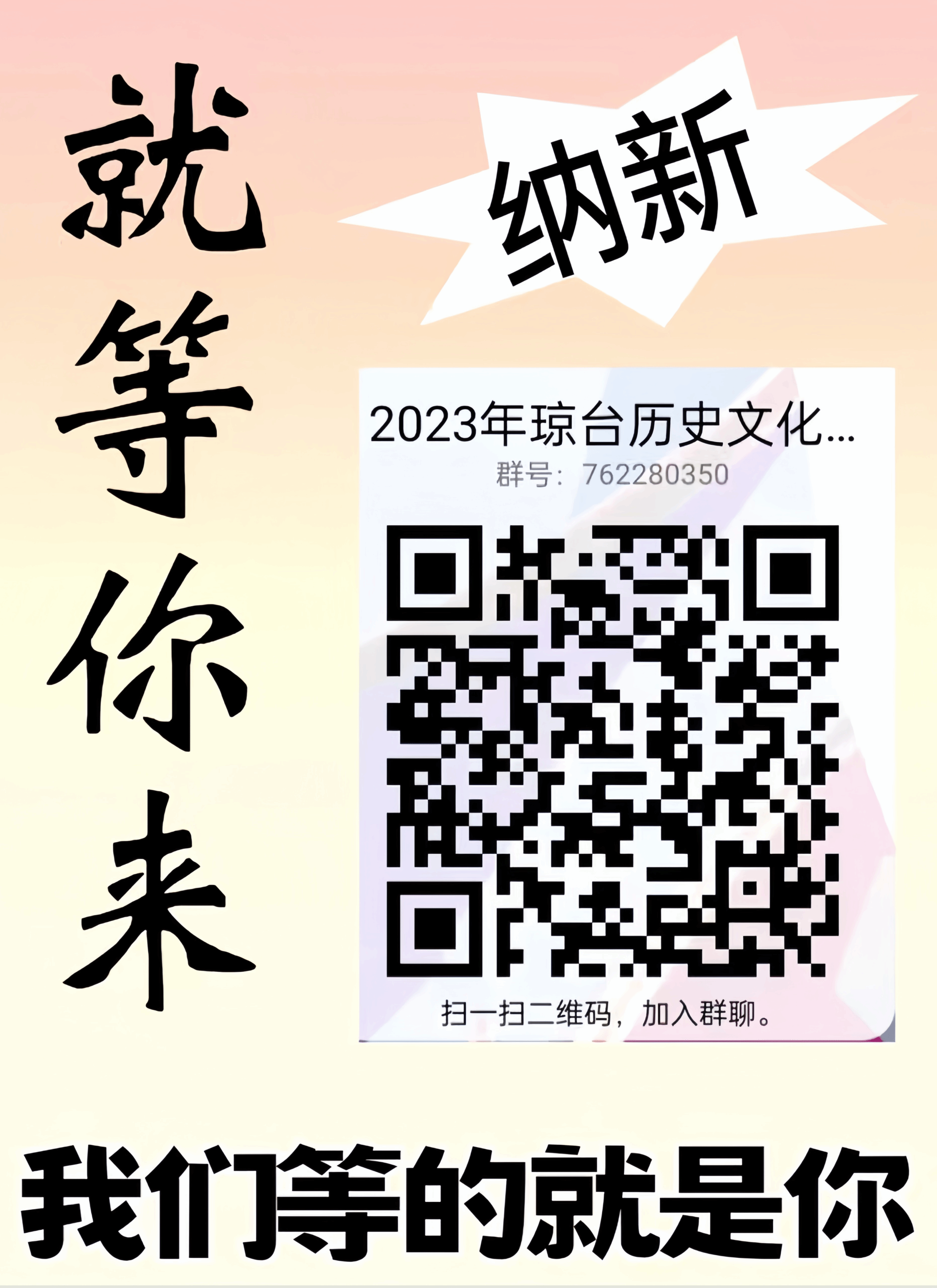 扫描下方海报二维码,进入纳新QQ群(762280350),进群请备注:学院+班级+姓名。