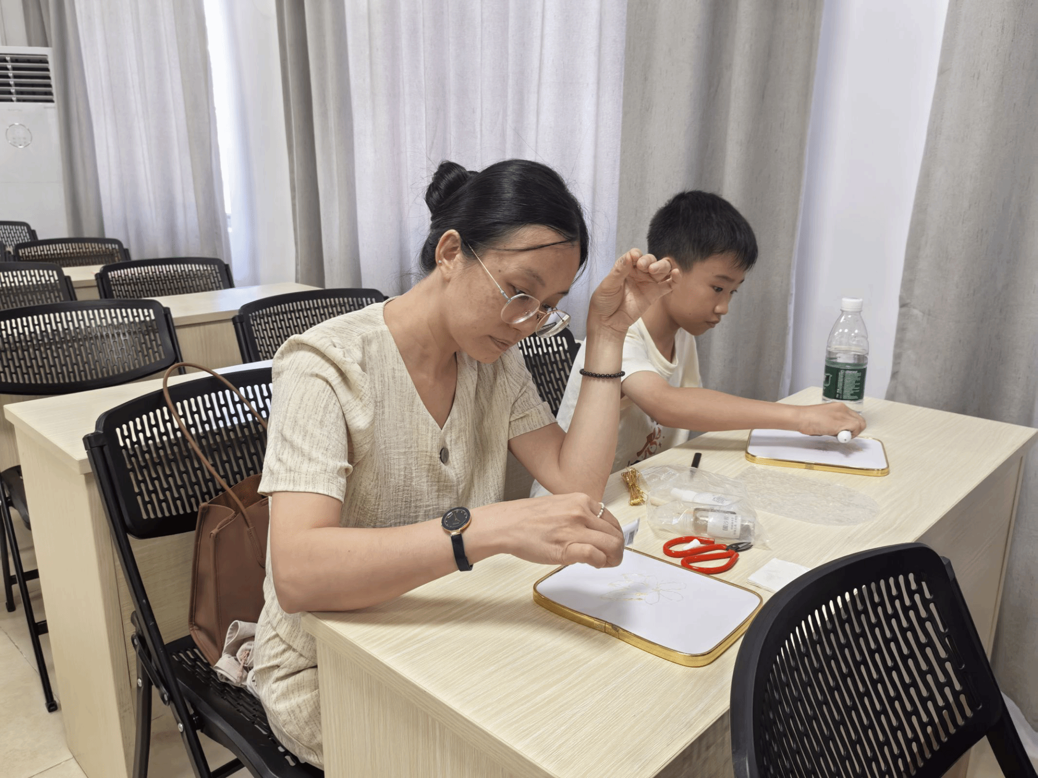 为了让青少年深入了解掐丝珐琅工艺,志愿者们精心准备了PPT和视频,详细讲解了从金属丝掐制到珐琅彩料填充的每一道工序,展现了传统技艺的精妙与匠心。讲解结束后,大家迎来了期待已久的动手体验环节。青少年们积极参与,在亲身制作中感受非遗工艺的独特魅力,并在交流讨论中进一步加深了对9428cn太阳集团古天乐文化的认识。